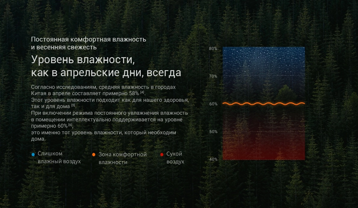 Уровень шума при работе увлажнителя ≤38 дБ, что обеспечит комфортное пребывание в помещении.