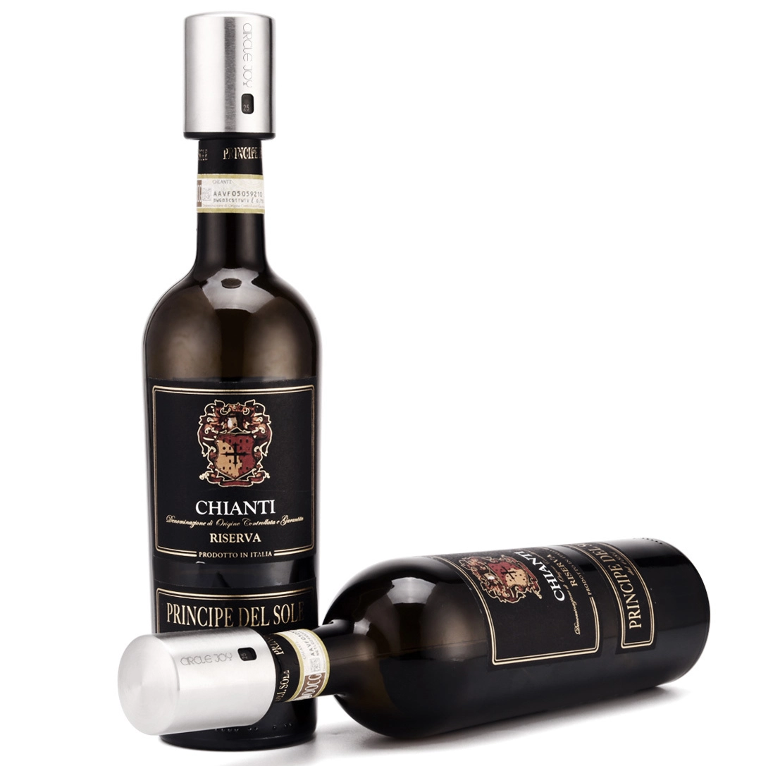 Пробка Wine Bottle Stopper изготовлена из прочного пластика и нержавеющей стали марки 304. Надежный механизм работает по принципу вакуумной помпы. Кроме этого, у стопора есть очень важная дополнительная функция - он снабжен механизмом, отображающим, когда была открыта бутылка. Это позволяет употребить вино до истечения срока его годности.