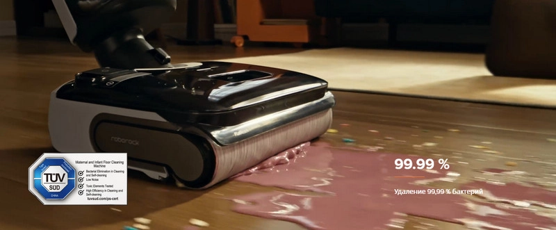 Док-станция с функцией самоочистки горячей водой 90°C и сушкой полностью избавляет вас от контакта с грязью. Всего за 5 минут система промывает и высушивает все компоненты, уничтожая 99,99% бактерий. Многоступенчатая фильтрация и герметичная конструкция обеспечивают гигиеничность на каждом этапе — просто отправьте пылесос на базу, остальное он сделает сам!