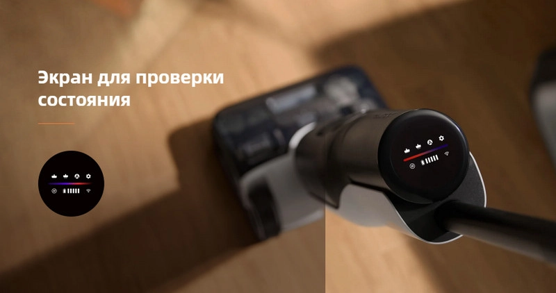 На информационном дисплее в реальном времени отображаются режим работы, заряд батареи и текущие настройки пылесоса. Достаточно мельком взглянуть на экран, чтобы узнать всё о состоянии устройства.