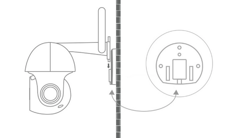 Камера поставляется с быстросъемным механизмом крепления. Просто закрепите на стене кронштейн и повесьте на него камеру.