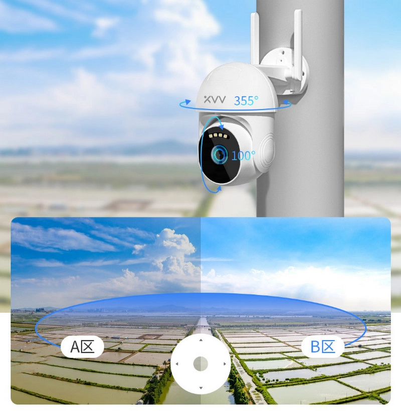 Видеокамера Xiaovv Outdoor PTZ Camera 4G (XVV-3620S-P6-4G) — уличная камера с 4G-связью. Работает при температуре от -10 до +50 градусов Цельсия, не боится дождя и имеет ночной ИК-режим. Режим обнаружения людей не пропустит злоумышленников и включит сигнализацию.