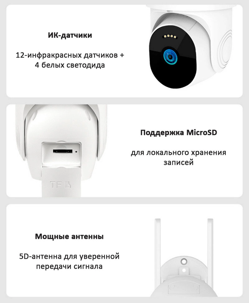 Камера имеет встроенный микрофон для записи звука и динамик для его передачи. Вы можете общаться с посетителями или передавать поручения.