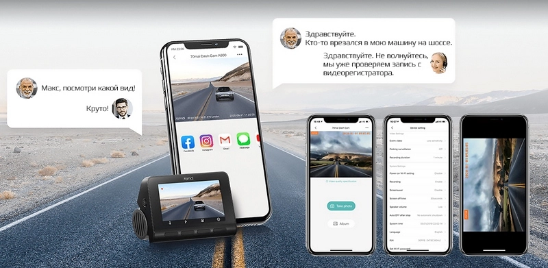 Установите на смартфон фирменное приложение 70mai и управляйте настройками регистратора, просматривайте записи и делитесь роликами в социальных сетях.