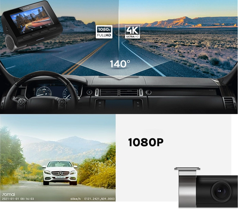 Видеорегистратор 70mai Dash Cam A800S 4K + камера заднего вида RC06 — это комплект, который поможет максимально обезопасить ваши поездки. Передняя камера A800S снимает с потрясающим качеством изображения 4К. Задняя работает в FullHD разрешении. Видеорегистратор поддерживает двухканальную запись. На вашем пути не останется ни одной слепой зоны.