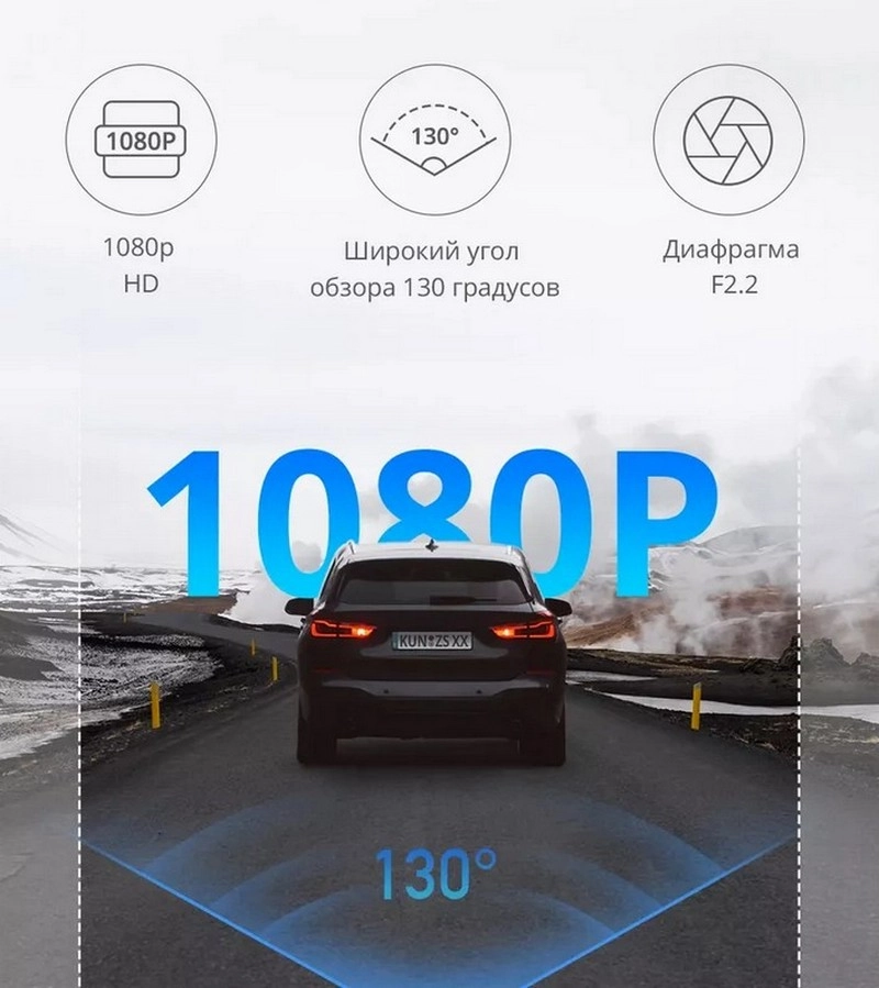 Широкий обзор, диафрагма F2.2 и запись в качестве FullHD позволяют различать номерные знаки впереди идущих автомобилей.