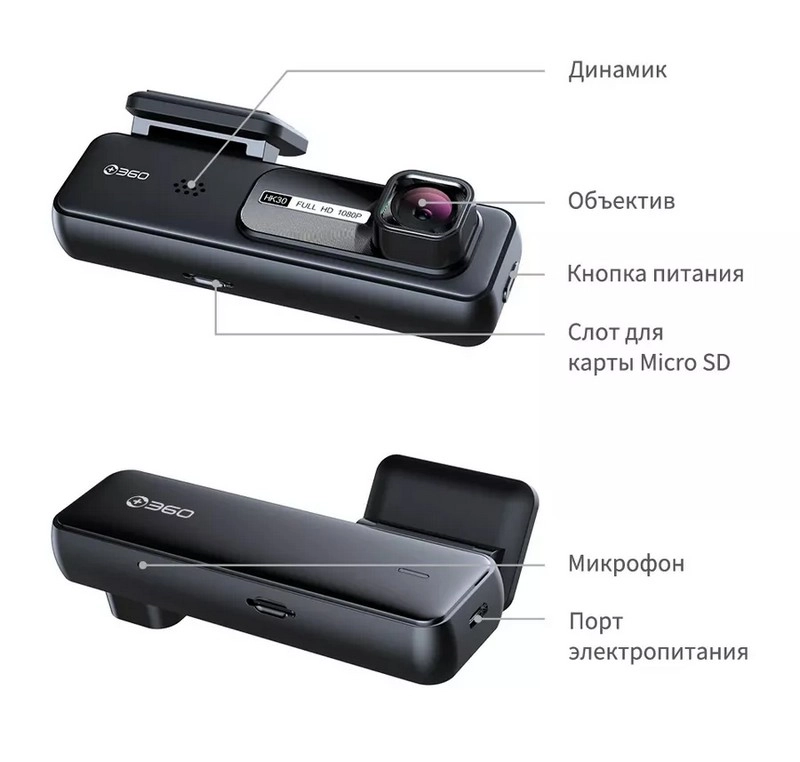 Небольшие размеры и скрытая проводка позволяют легко закрепить камеру на зеркале или лобовом стекле автомобиля.