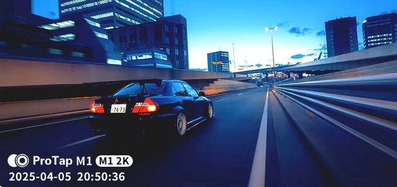 ProTap Dash Cam M1 оснащён объективом с шестислойной линзой и диафрагмой F1.5, что обеспечивает отличную светочувствительность даже в тёмное время суток. Благодаря большой апертуре камера захватывает больше света, делая ночные съёмки яркими и детализированными. Такая конструкция позволяет фиксировать важные детали на дороге и номера автомобилей даже при слабом освещении, а изображение остаётся чётким независимо от условий.
