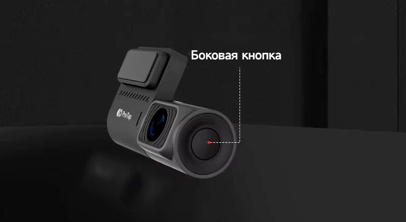 ProTap Dash Cam M1 оснащён удобной кнопкой, которая позволяет одним нажатием включать или выключать запись, а при длительном нажатии — выполнять сброс устройства.