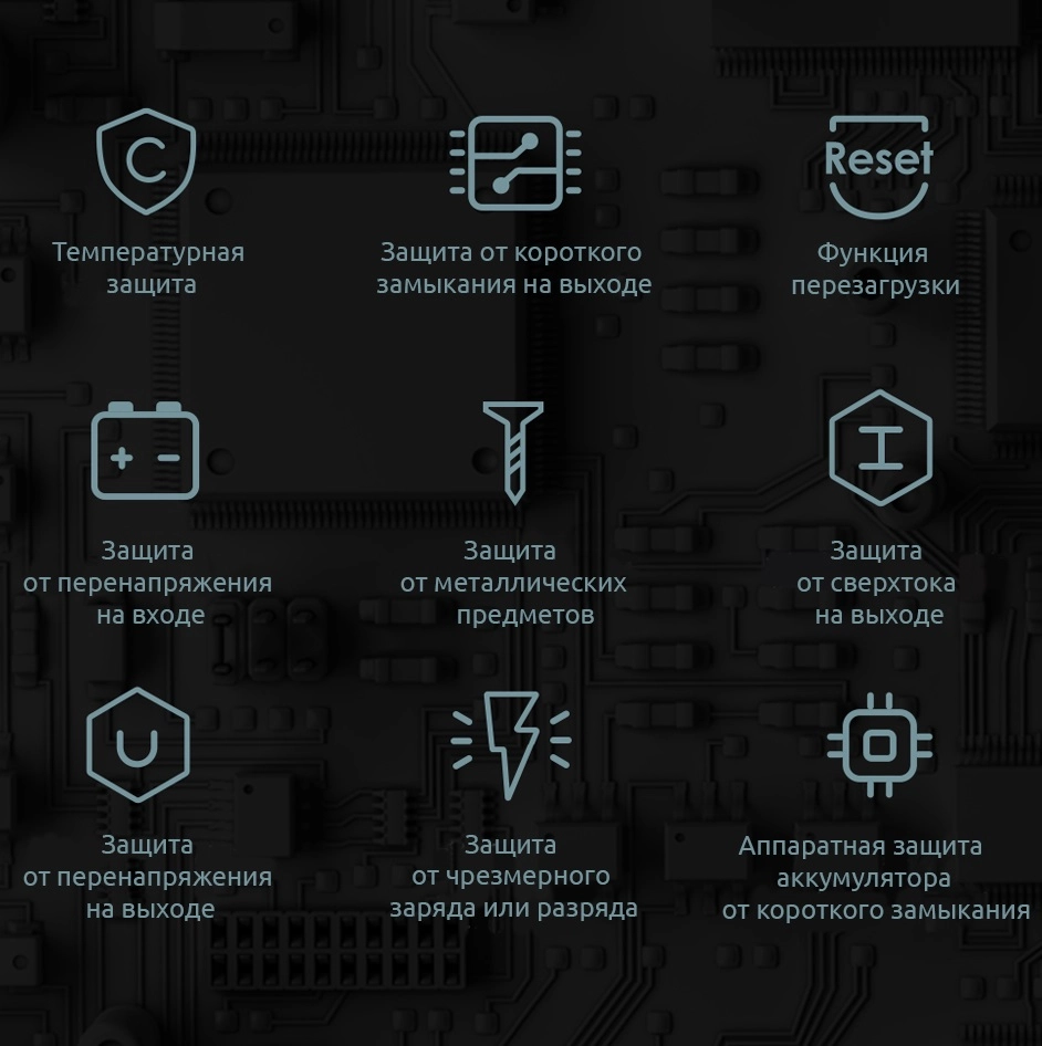 | Параметры выхода | USB-A: 5V/2/4A, 9V/2A, 12V/1.5A | |