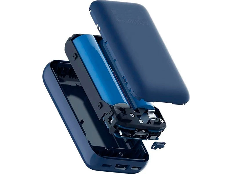 Внешний аккумулятор поставляется с двойным кабелем для зарядки в комплекте. Пользователь может использовать разъем Type-C или Type-A для зарядки устройств.