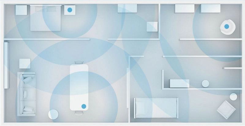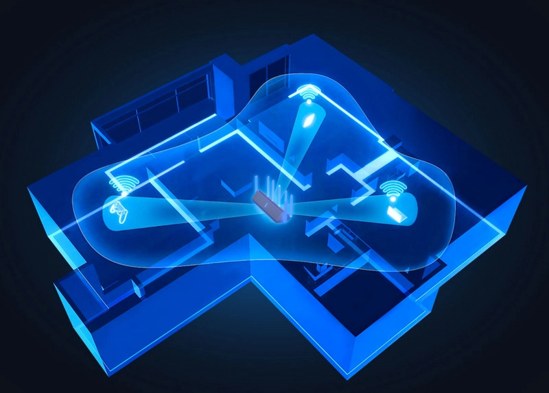 Умный роутер определяет местоположение устройств и усиливает сигнал в этом направлении, обеспечивая равномерное и сильное покрытие.