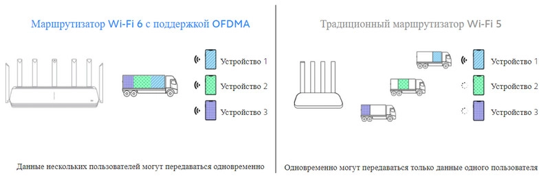 Роутер работает с технологией OFDMA, которая максимально эффективно распределяет ресурсы канала одновременно передавая данные сразу на несколько устройств.