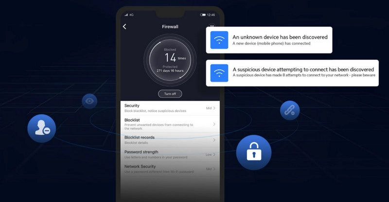 Если какое-то устройство работает в сети Wi-Fi без разрешения, то мобильное приложение отправит вам оповещение. В зависимости от настроек сети новое устройство либо полностью блокируется, либо отправляется запрос на разрешение подключения, которое выдается нажатием одной кнопки.