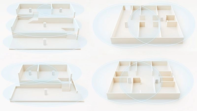 Xiaomi Mesh System AX3000 поставляется в вариантах с 1, 2 или 3 системами в комплекте. Вариант с одним роутером и одним спутником маршрутизатором подходит для квартиры с несколькими стенами, для апартаментов с 3-6 спальнями подойдет комбинация роутера с двумя маршрутизаторами, а для большого одноэтажного дома оптимальным будет сочетание роутера и трех дополнительных маршрутизаторов.