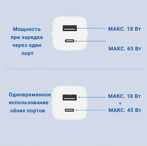 Модель | Xiaomi 65W GaN Charger (Type-A + Type-C) | |